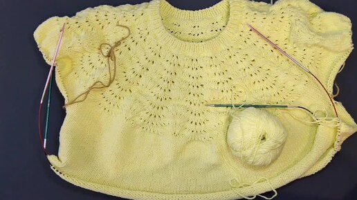 Продолжаю вязать майку спицами по МК Людмилы Красноперовой.