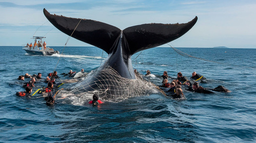 70-тонный кит молил о помощи: дайверы рискнули жизнью ради его спасения