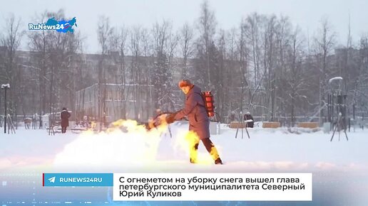 С огнеметом на уборку снега вышел глава петербургского муниципалитета Северный Юрий Куликов
