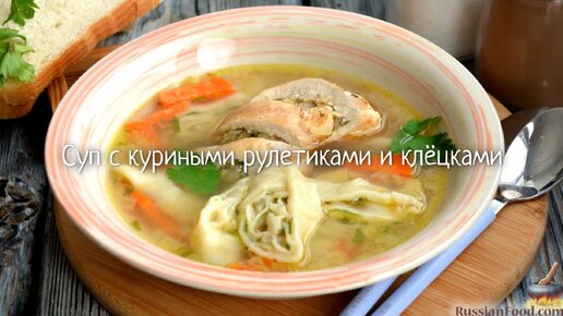 Простой суп в оригинальном исполнении. Суп с куриными рулетиками и клёцками