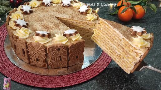 Роскошный торт СПЕКУЛОС на Рождество! Нежнейший песочный торт! Без сливок! Вкуснейший Зимний торт!