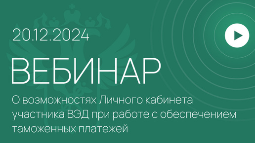 Вебинар на тему «О возможностях Личного кабинета участника ВЭД при работе с обеспечением таможенных платежей»