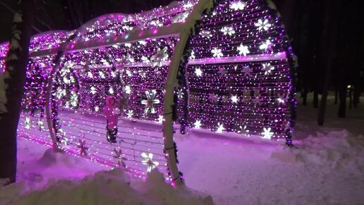 Вечерняя прогулка по украшенному к Новому году московскому парку "Дружба"
