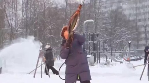 Глава муниципалитета в Питере вышел на уборку снега с огнеметом.