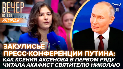 ЗАКУЛИСЬЕ ПРЕСС-КОНФЕРЕНЦИИ ПУТИНА: КАК КСЕНИЯ АКСЕНОВА В ПЕРВОМ РЯДУ ЧИТАЛА АКАФИСТ СВЯТИТЕЛЮ НИКОЛАЮ