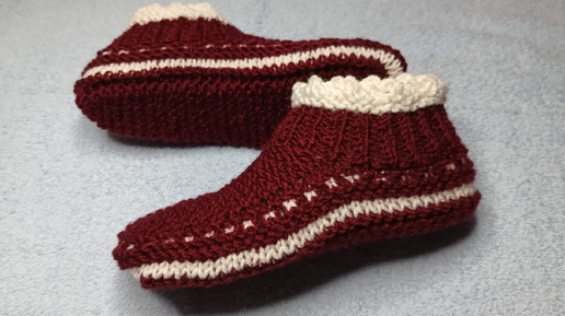 Уютные тапочки на двух спицах и без шва по подошве. Подробный МК 😉