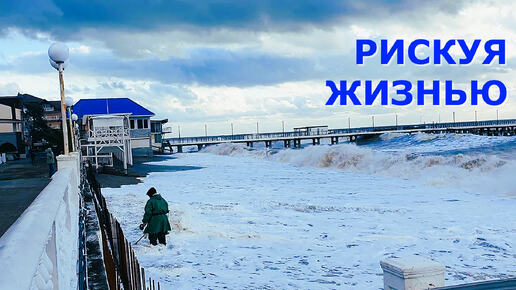 Шторм ещё бушует. Восстановление набережной началось. Лазаревское Сочи