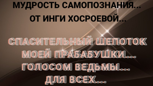 СПАСИТЕЛЬНЫЙ ШЕПОТОК МОЕЙ ПРАБАБУШКИ... ГОЛСОМ ВЕДЬМЫ... ДЛЯ ВСЕХ... РИТУАЛЫ ИНГИ ХОСРОЕВОЙ...