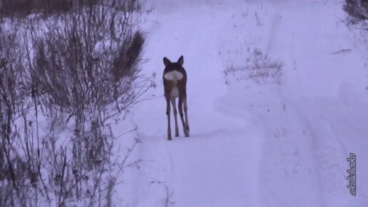 СЕМЬЯ КОСУЛЬ НА ЗИМНЕЙ ДОРОГЕ.
