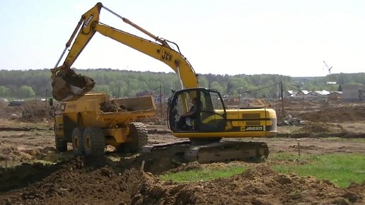 Экскаватор JCB JS220LC грузит самосвал Volvo A30E часть 1