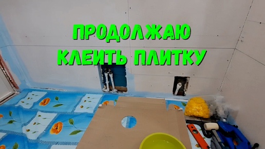 Продолжаю клеить плитку на стены. Сломалась стиралка.