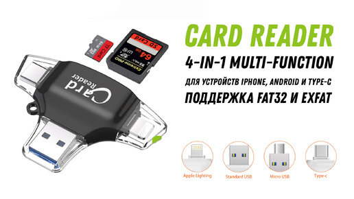 CARD READER для iPhone iPad iOS и Android (ЧИТАЕТ ВСЁ!) - ФЛЭШКА В iPHONE