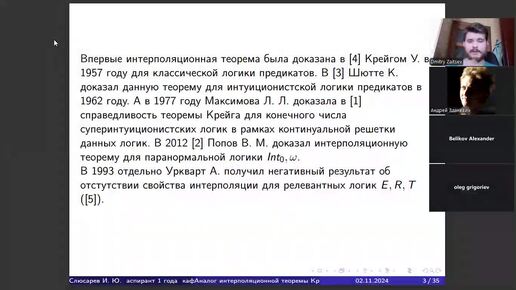 «Аналог интерполяционной теоремы для логики с оператором Руета», Слюсарев И. Ю. (МГУ имени М.В. Ломоносова)
