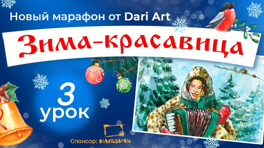 Марафон «Зима-красавица», 3 урок - акварельный скетч с девушкой