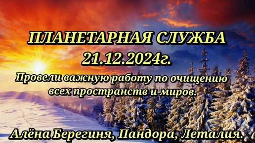 ПЛАНЕТАРНАЯ СЛУЖБА 21.12.2024г. Очищение всех миров и простанств от негативной энергии.
