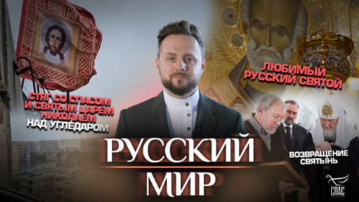 СТЯГ СО СПАСОМ И СВЯТЫМ ЦАРЕМ НИКОЛАЕМ НАД УГЛЕДАРОМ/ЛЮБИМЫЙ РУССКИЙ СВЯТОЙ/ВОЗВРАЩЕНИЕ СВЯТЫНЬ