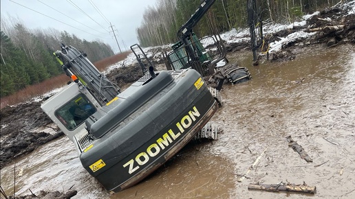 Подборщик утонул,экскаватор в туже лужу / ДТ не запускается