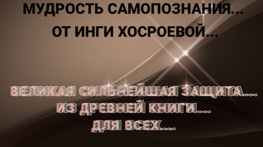 ВЕЛИКАЯ СИЛЬНЕЙШАЯ ЗАЩИТА... ИЗ ДРЕВНЕЙ КНИГИ... ДЛЯ ВСЕХ... РИТУАЛЫ ИНГИ ХОСРОЕВОЙ...