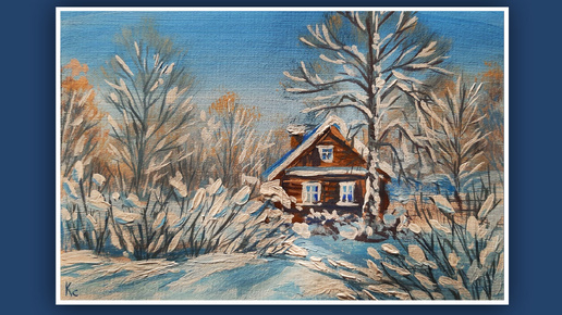 Как нарисовать зимний пейзаж ИСПОЛЬЗУЯ ВСЕГО 4 ЦВЕТА. Как просто нарисовать зимнюю деревню