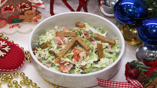 Салат с Пекинской капустой и Красной рыбой «Нежный»