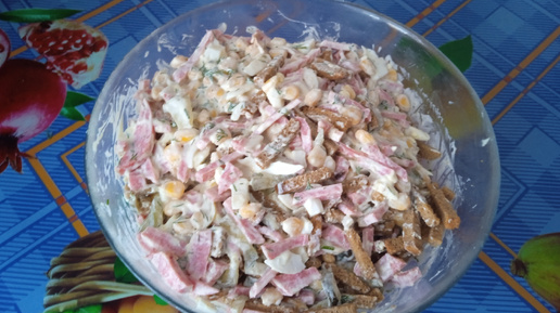 САЛАТ С КОЛБАСОЙ И КИРИЕШКАМИ