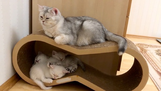 Кошка Кайли спит со своими детками прекрасными малышами.