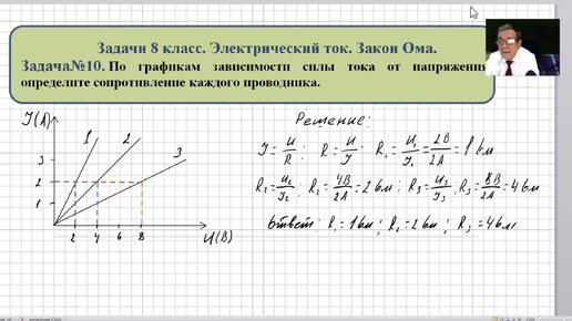 Физика08 ОК 003 Задача 10 Закон Ома. Сопротивление. По графикам зависимости силы тока от напряжения определите сопротивление каждого ...