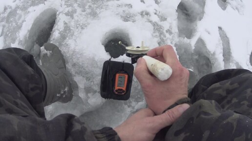 Зимняя ловля рыбы. Весь день её искал и нашёл!!!