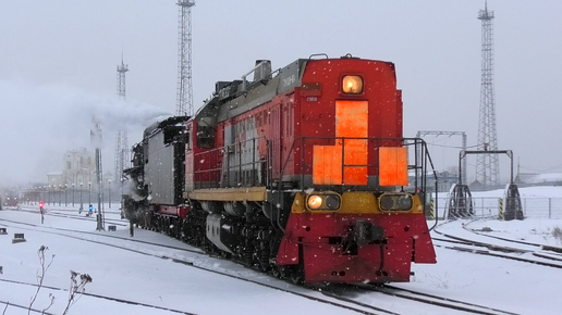 ТЭМ18ДМ-604 с паровозом ЛВ-0355 отправляются со станции Электролитная