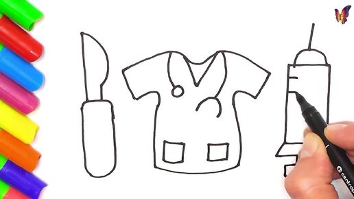 Как нарисовать набор врача для детей / How to Draw Doctor's Toys For Children / Раскраска своими руками, рисунки для повторения детьми