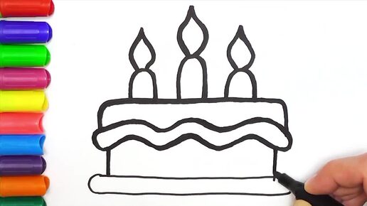 Как нарисовать праздничный торт на День Рождение / How To Draw Easy Birthday Cake For Kids / Открытка на День Рождения своими руками