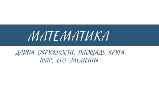 6 класс - Математика - Длина окружности. Площадь круга. Шар, его элементы