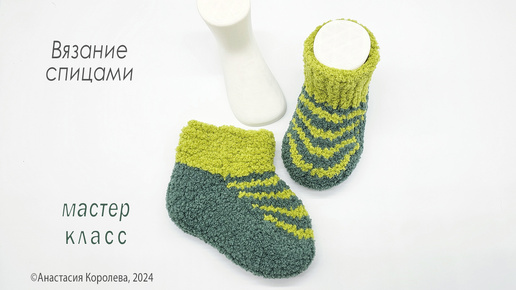 Детские, теплые, плюшевые носочки на двух спицах без шва