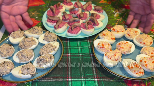 Три вида закусок на праздничный стол. Фаршированные яйца.