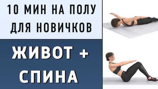 10 мин ЖИВОТ + СПИНА + КОР - простые упражнения на полу // Без планок - для любого возраста и веса