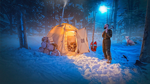 НОЧУЮ В ЛЕСУ в ЗИМНЕЙ ПАЛАТКЕ С ПЕЧКОЙ | КРУГОМ ДИКИЕ ЗВЕРИ