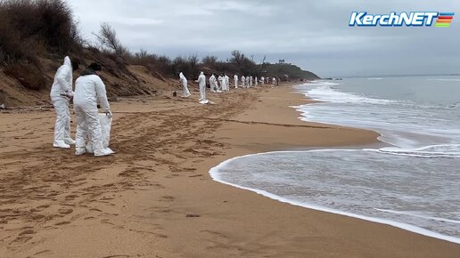 К уборке мазута в Керчи подключились военные