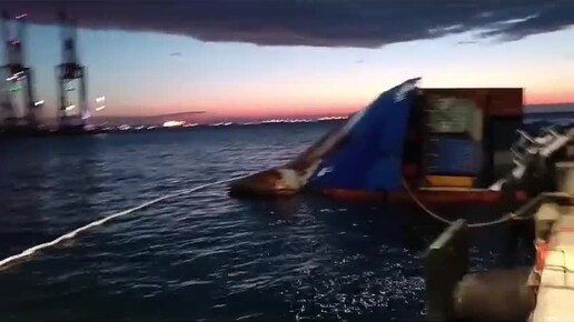 Контейнеровоз Amnah под флагом Коморских островов опрокинулся на бок в порту Амбарлы-Марпорт в Стамбуле