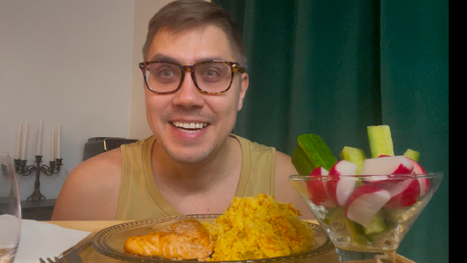 Мукбанг ⭐️ Кускус лосось и овощи ⭐️ Ничего не делал и этому рад!