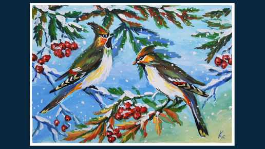 Рябина в снегу гуашью. Рисуем свиристелей. Птицы рисунок гуашью