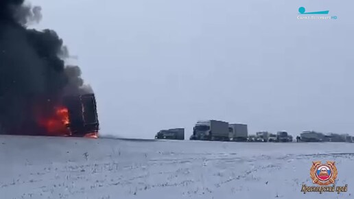 Горячее столкновение на троих: на трассе "Сибирь" стукнулись 2 грузовика и легковушка, грузовики разгорелись, трассу перекрыли