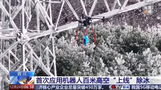 ⚡️Китайские дроны и роботы объединились, чтобы убрать лед с проводов. Новацию представила электросетевая госкорпорация Китая.