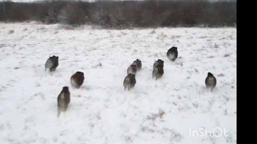 Много кабанов в кустах. Кабаны зимой. Пересчитал кабанов.