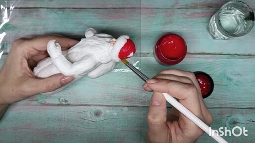 Ватный Дед Мороз. Окрашиваем игрушку и продолжаем наращивать бороду