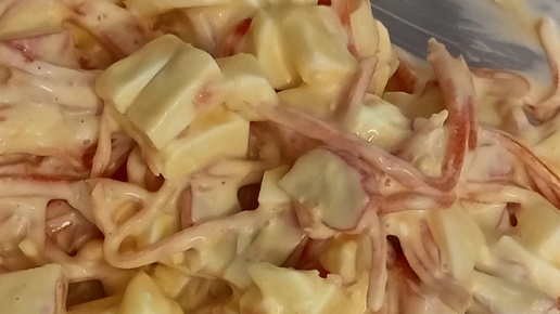 Готовим 15 минут. Салат из яиц, корейской моркови, крабовых палочек и плавленого сыра.