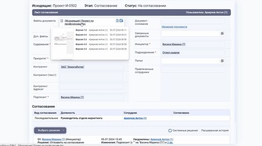 Карточка документа в Docs5