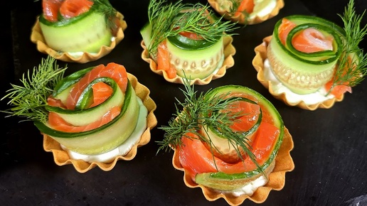 Простые тарталетки с лососем огурцом и сливочным сыром