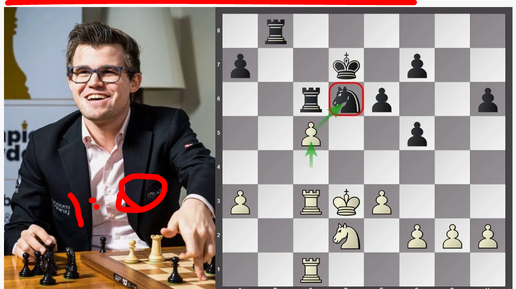 С барского плеча Магнус Карлсен дарует белую ладью Максиму Вашье-Лаграву ходом 32.♖xc5 и вскоре ставит мат "поцелуй смерти" (Осло, 2024, 1-0
