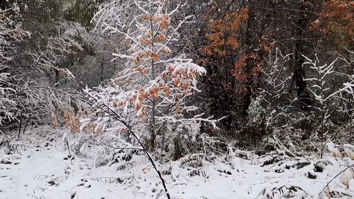 Первый снег. Встреча осени и зимы.