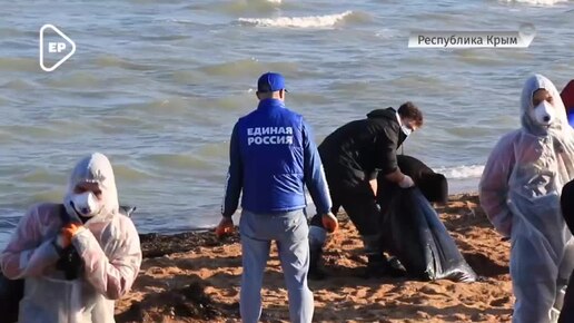 Активисты в Крыму очищают побережье Керченского пролива от последствий выброса нефтепродуктов